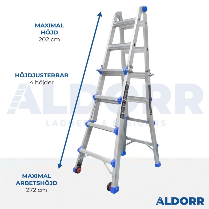 ALDORR Multistege Home kombinerar avancerade funktioner med en hållbar design för att erbjuda maximal säkerhet och användarvänlighet. Tack vare de robusta ALDORR Grip-Lock gångjärnen och visuella indikatorerna förblir stegen stabil och pålitlig i varje position. De integrerade SwiftRoll-hjulen gör transporten enkel och smidig, medan SureStep-stegen med halkfritt ytskikt och bekvämt djup ger extra säkerhet och komfort. Perfekt för en mängd olika användningsområden, erbjuder denna stege ultimat stabilitet och användarvänlighet för både proffs och hemmafixare.