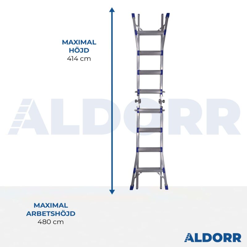 I rakt läge har stegen en (justerbar) höjd från 247 till 414 cm.